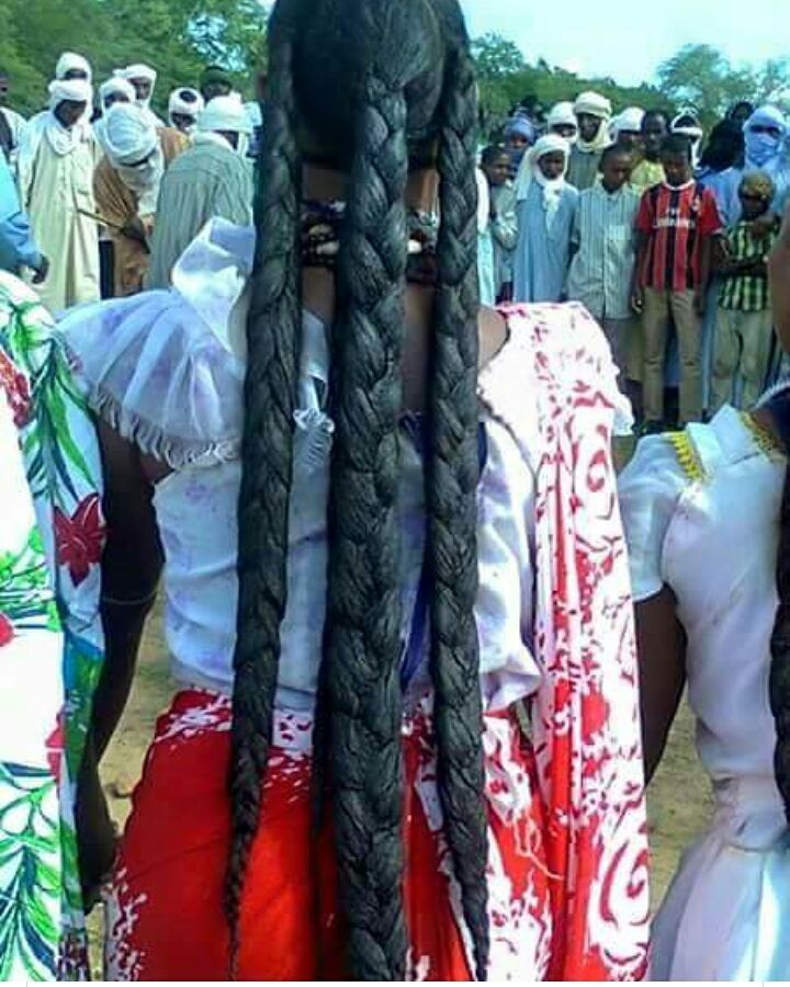 Some people may initially think that their hair length is due to genetics, after inquiring on the subject the women said that it was most definitely NOT due to genetics since they do not apply chébé powder mixture to their bangs which, in turn, stay short. However the parts of the hair which they do use the powder mixture on in their routine doesn't break and grows very long and strong.